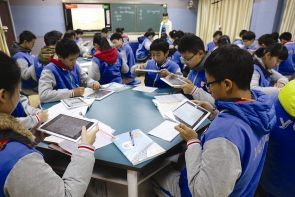 现在,课堂教学模式完全变了,电脑、投影仪、电子白板、实物展台及即时反馈系统,组成了一个“智慧教室”。通过智慧教室系统,一堂课的上课过程可以即时生成。课后,任课老师将生成的“课堂”上传云平台。学生通过学校发的个人账号,登录学校云平台,可随时重温课堂内容……“智慧教室”的快速普及更加说明,如今传统的教学方式,已经不能适应现代化教学的需要。在网络等渠道的刺激下,学生的思维越来越“耐不住寂寞”。因此,改进授课方式不仅是提高教学效率的重要手段,也成为留住学生“专注力”的主要途径。为提高教学质量和教学效率,很多多学校都启动了信息化教学模式,“人手一个iPad”也日益成为在校学生的“标配”。