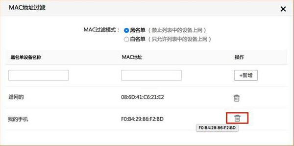如果路由器设置了MAC地址过滤,也可能会造成“身份验证出现问题”的情况。这时我们可以更改MAC过滤规则或直接关闭MAC过滤功能。