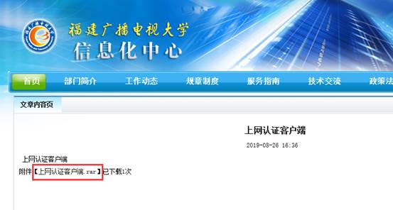 (1)浏览器访问https://jsc.fjou.edu.cn/info/1069/3232.htm,点击“上网认证客户端.rar”下载客户端,下载后解压文件,双击解压后的文件安装。