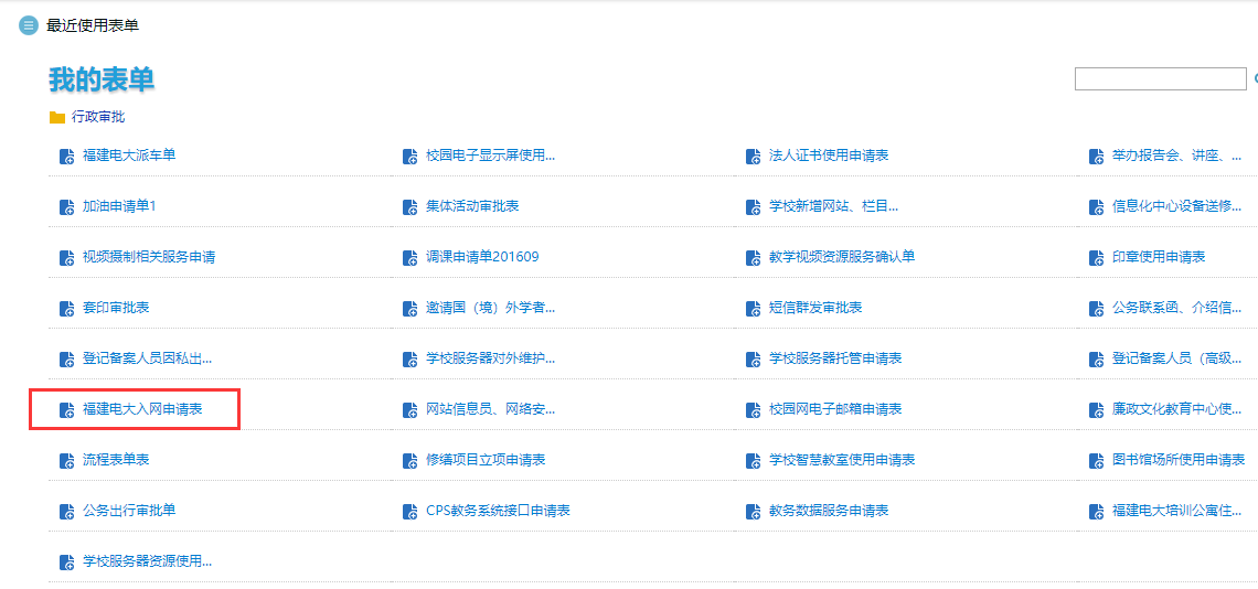 3. 非上述两类人员,因工作需要需使用本校校园网,由所属的业务部门,按下面的步骤在OA申请上网账号。