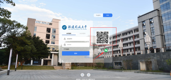1、 打开浏览器,访问智慧校园平台,地址为https://i.fjou.edu.cn,在登录界面中,点击“微信图标”,进行微信扫码。